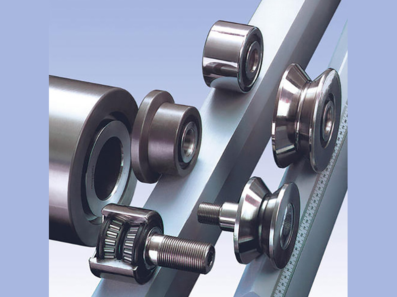 滚轮轴承外圈采用外圈壁较厚的满装圆柱滚子轴承,滚轮的外径面有圆柱形和弧形,可根据使用场合设计来与滚道面配合。利用这种外圈,滚轮可以直接在滚道上滚动,并可以承受较重负荷和冲击负荷。